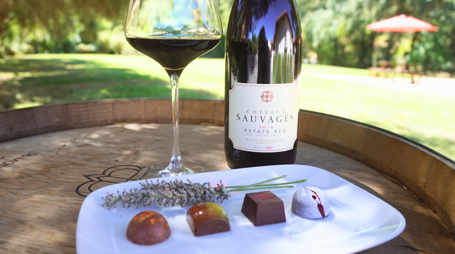 Discover the art of pairing fine wine with handcrafted chocolate. In collaboration with local chocolatier Fleur Sauvage, enjoy four artisanal bonbons paired perfectly with our Estate wines.